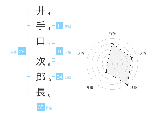 井手口 次郎長さんを姓名の画数から五運を鑑定
