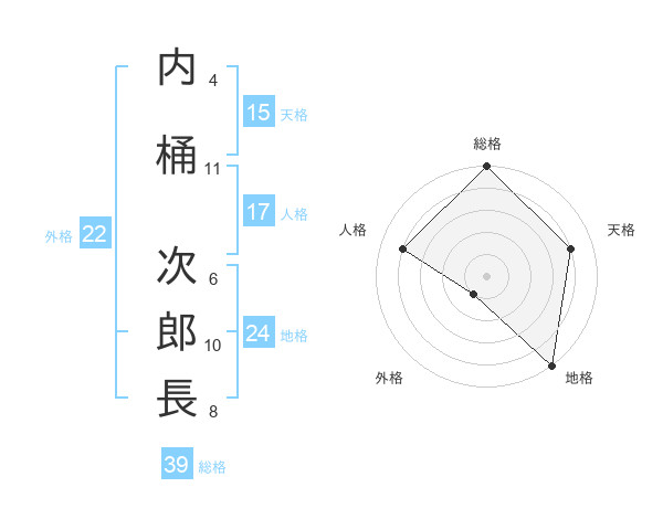 内桶 次郎長さんを姓名の画数から五運を鑑定