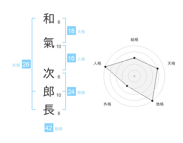 和氣 次郎長さんの天格は18画の4点!
