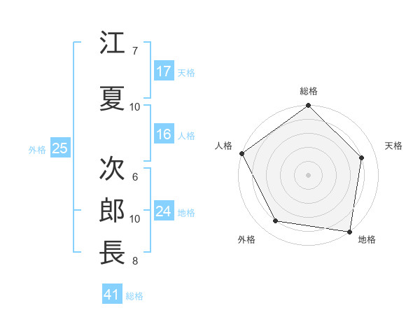 江夏 次郎長さんの総格は41画の5点!