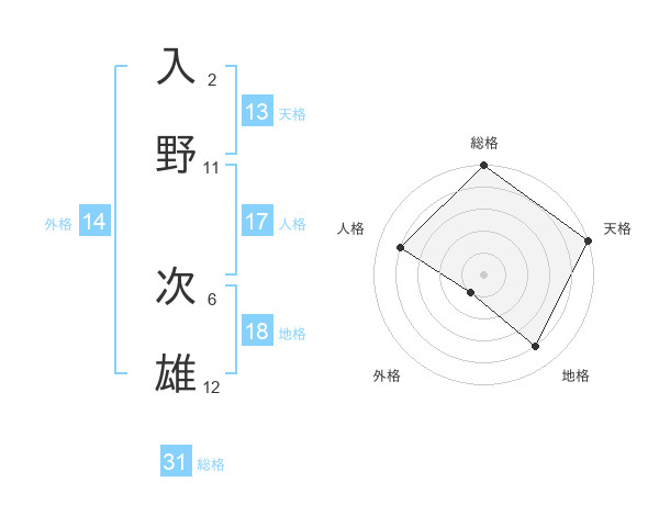 入野 次雄さんの総格は31画の5点!