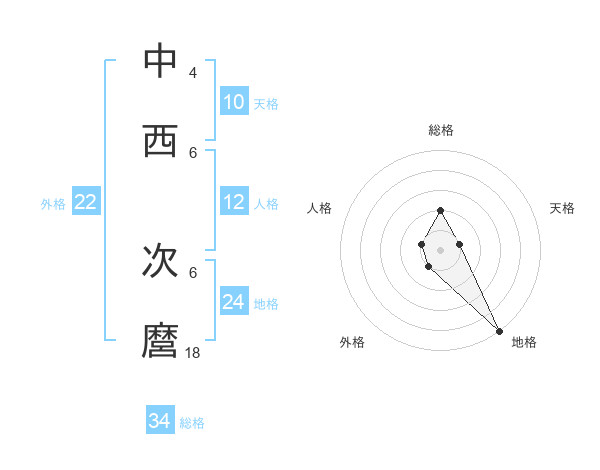 中西 次麿さんの地格は24画の5点!