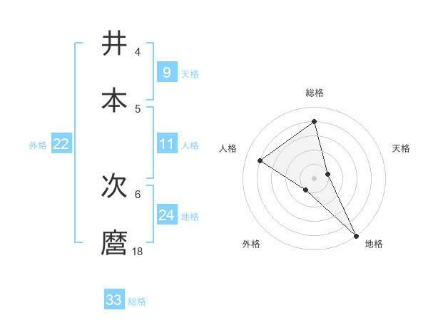 井本 次麿さんの総格は33画の4点!
