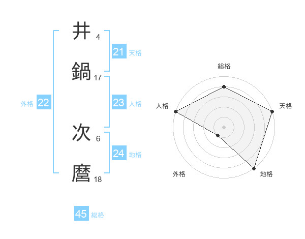 井鍋 次麿さんの総格は45画の4点!