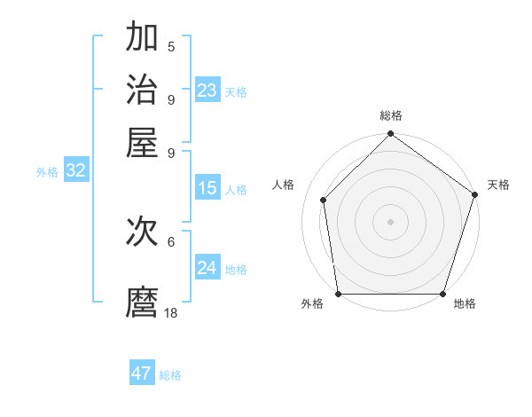 加治屋 次麿さんの総格は47画の5点