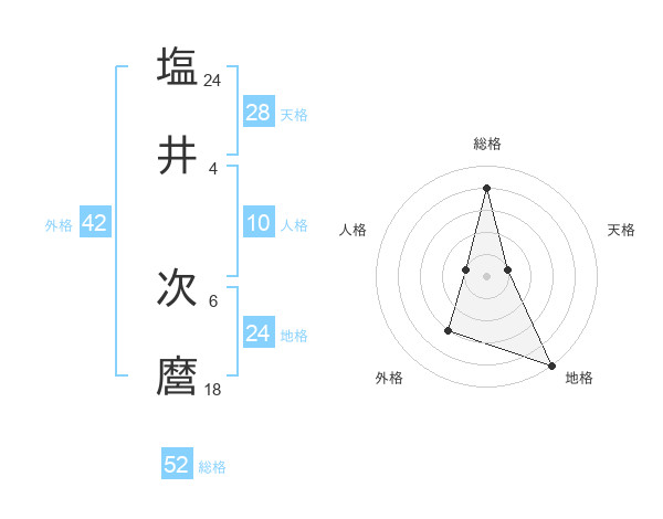 塩井 次麿さんの総格は52画の4点!