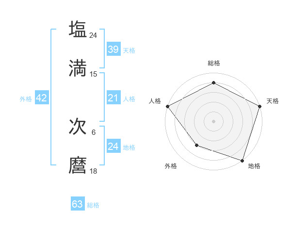 塩満 次麿さんの天格は39画の5点!