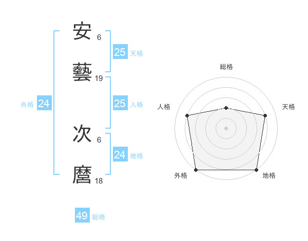 安藝 次麿さんを姓名の画数から五運を鑑定