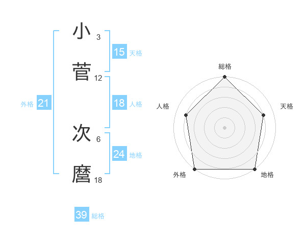 小菅 次麿さんの外格は21画の5点!