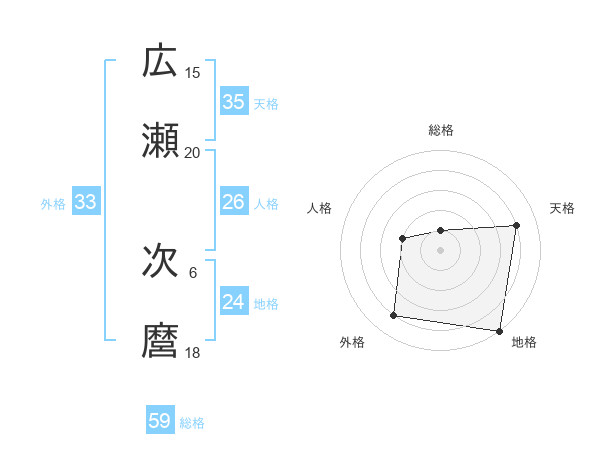広瀬 次麿さんを姓名の画数から五運を鑑定