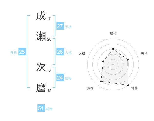 成瀬 次麿さんの総格は51画の3点!