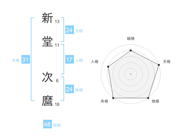 新堂 次麿さんを姓名の画数から五運を鑑定