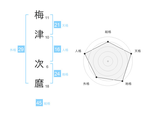 梅津 次麿さんの総格は45画の4点!