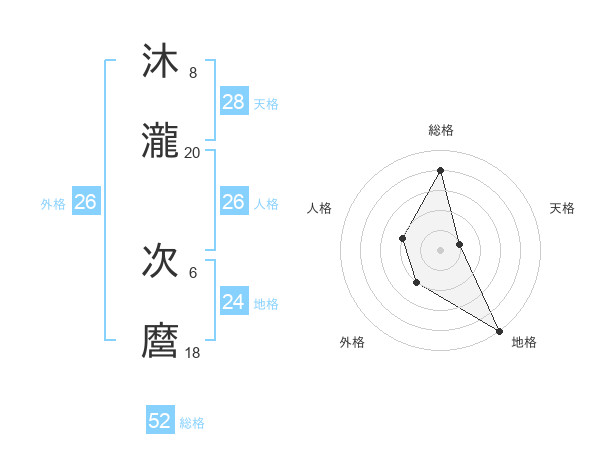 沐瀧 次麿さんの総格は52画の4点!