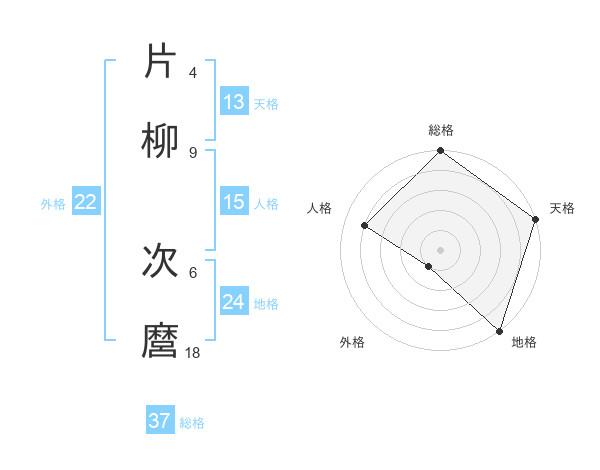 片柳 次麿さんの総格は37画の5点!