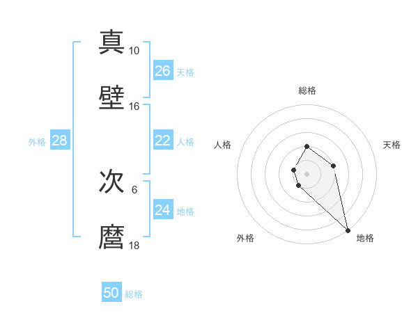 真壁 次麿さんの総格は50画の2点!