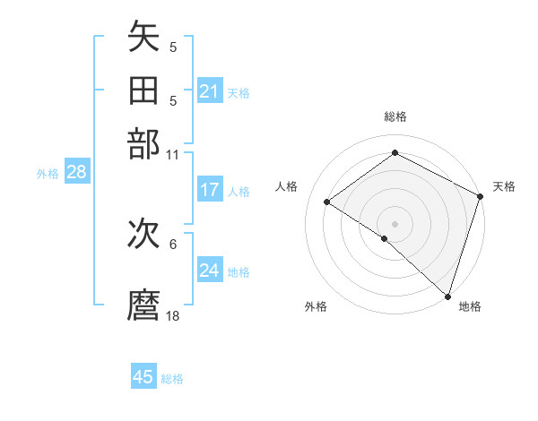 矢田部 次麿さんを姓名の画数から五運を鑑定