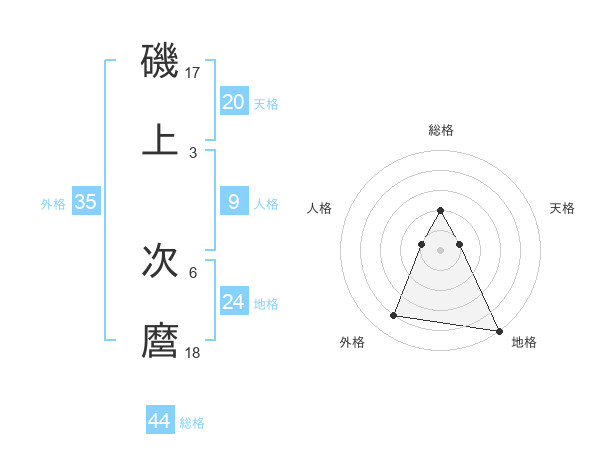 磯上 次麿さんの総格は44画の2点!