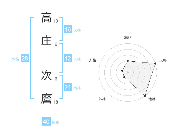 高庄 次麿さんの天格は16画の5点!