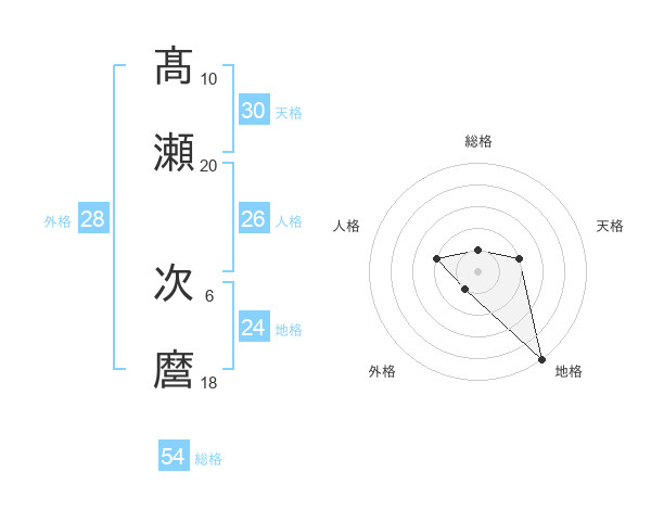 髙瀬 次麿さんの総格は54画の1点!