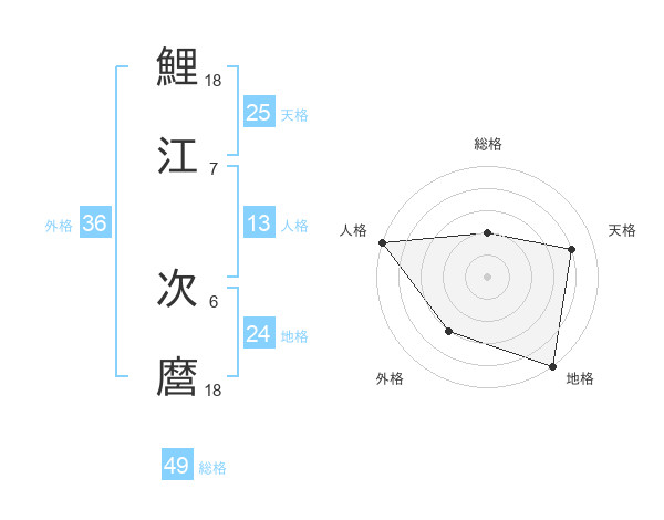 鯉江 次麿さんの天格は25画の4点!