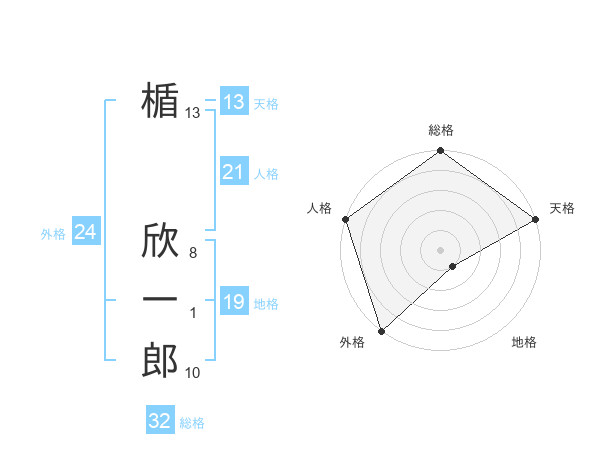 楯 欣一郎さんの総格は32画の5点!