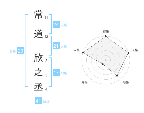 常道 欣之丞さんの総格は41画の5点!