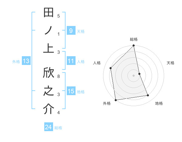 田ノ上 欣之介さんの総格は24画の5点!