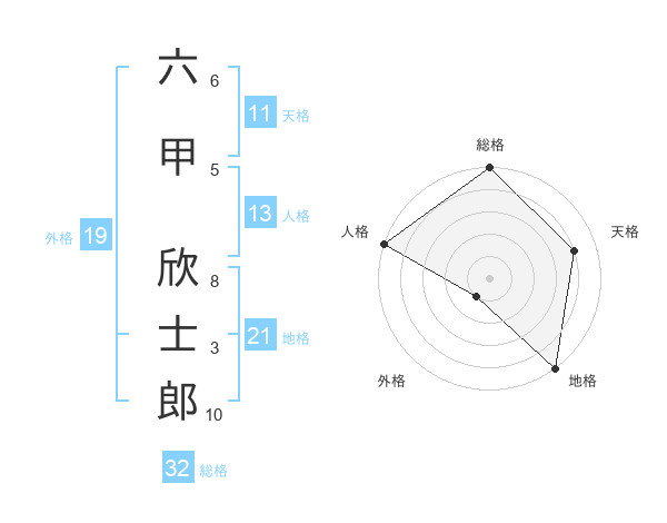 六甲 欣士郎さんを姓名の画数から五運を鑑定