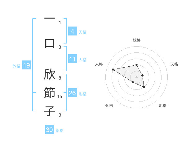一口 欣節子さんの総格は30画の2点!