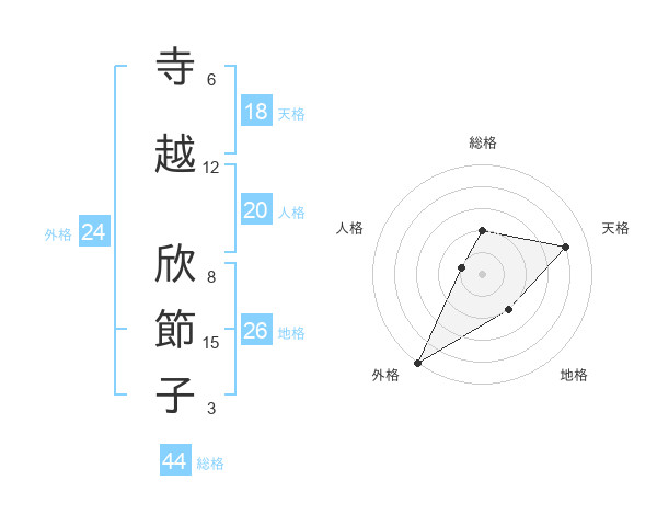 寺越 欣節子さんの外格は24画の5点!