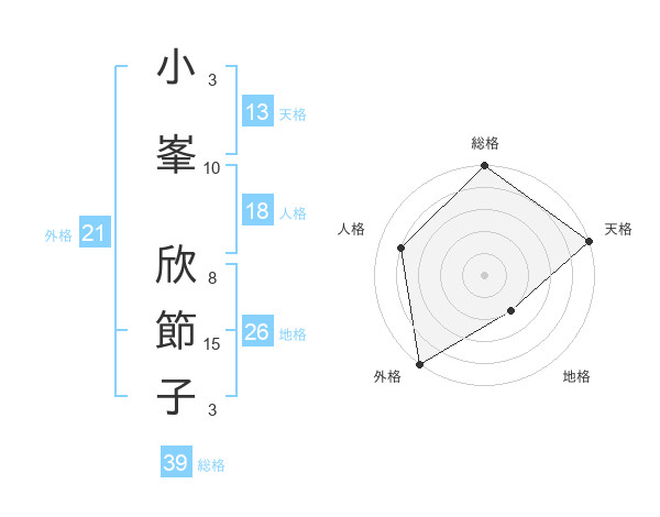 小峯 欣節子さんを姓名の画数から五運を鑑定