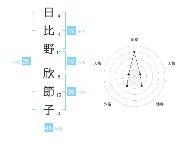 日比野 欣節子さんを姓名の画数から五運を鑑定