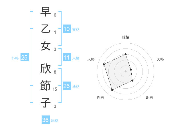 早乙女 欣節子さんを姓名の画数から五運を鑑定