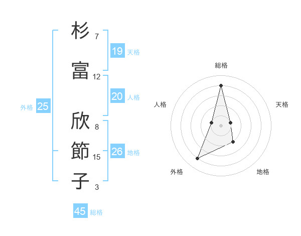 杉富 欣節子さんを姓名の画数から五運を鑑定