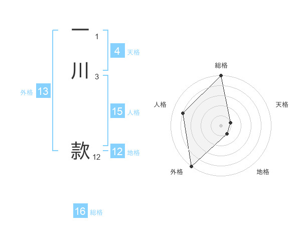 一川 款さんの総格は16画の5点!