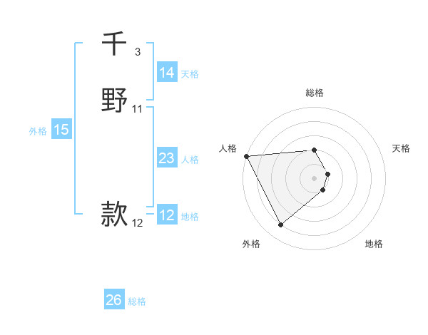 千野 款さんの総格は26画の2点!