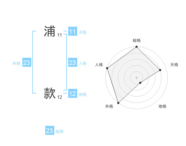 浦 款さんの外格は23画の5点!