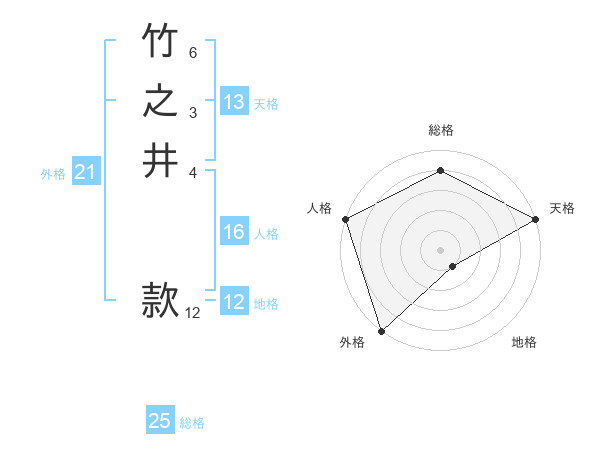 竹之井 款さんの総格は25画の4点!
