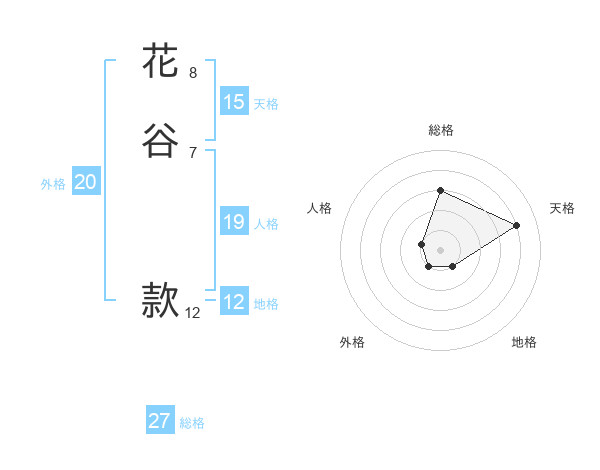 花谷 款さんの総格は27画の3点!