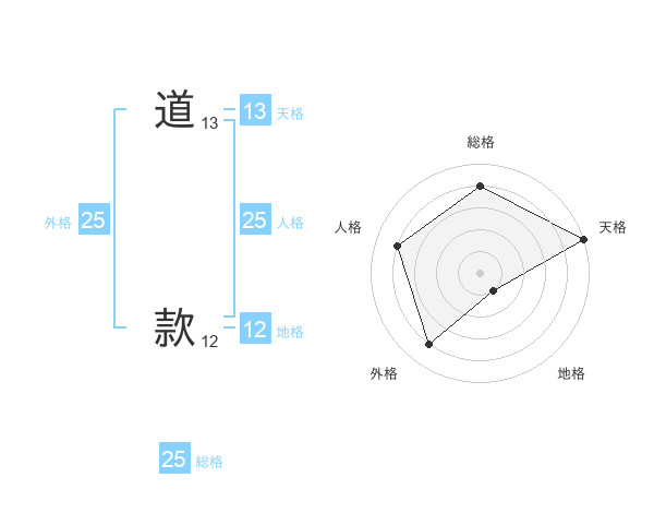 道 款さんの総格は25画の4点!