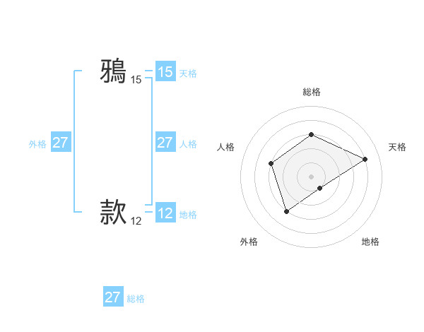 鴉 款さんの総格は27画の3点!