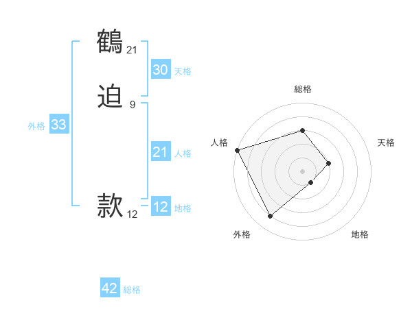 鶴迫 款さんを姓名の画数から五運を鑑定