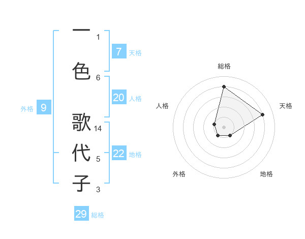 一色 歌代子さんを姓名の画数から五運を鑑定