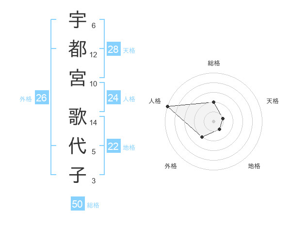 宇都宮 歌代子さんを姓名の画数から五運を鑑定