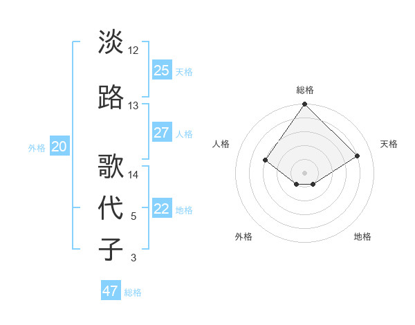淡路 歌代子さんを姓名の画数から五運を鑑定