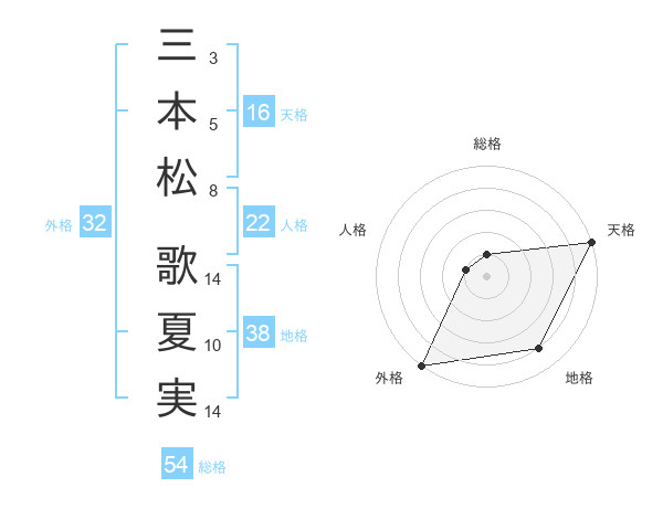 三本松 歌夏実さんを姓名の画数から五運を鑑定