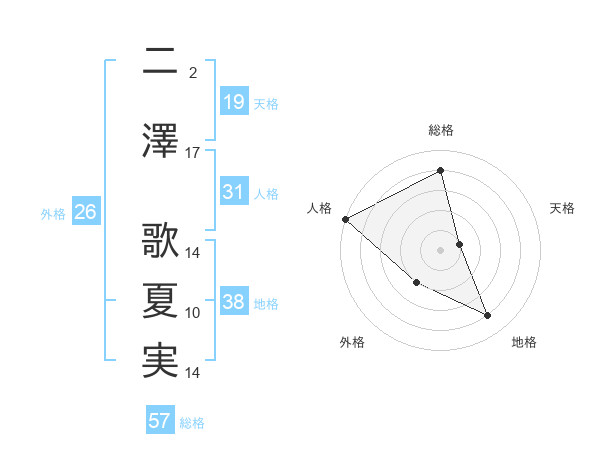 二澤 歌夏実さんの地格は38画の4点!