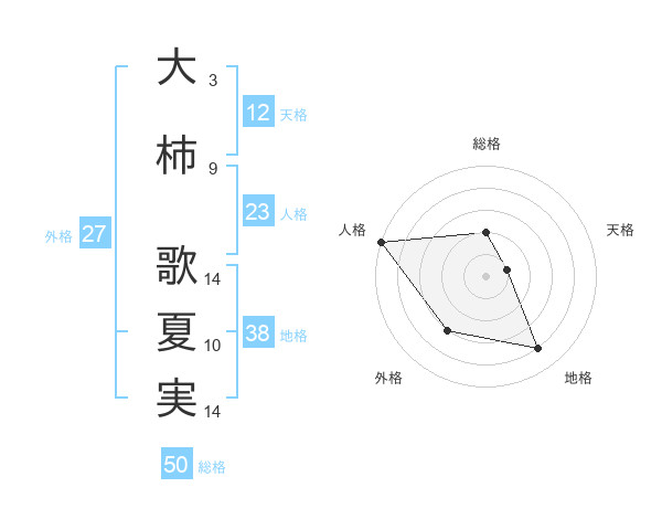 大柿 歌夏実さんの総格は50画の2点!