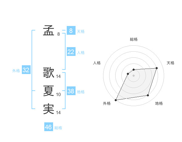 孟 歌夏実さんを姓名の画数から五運を鑑定